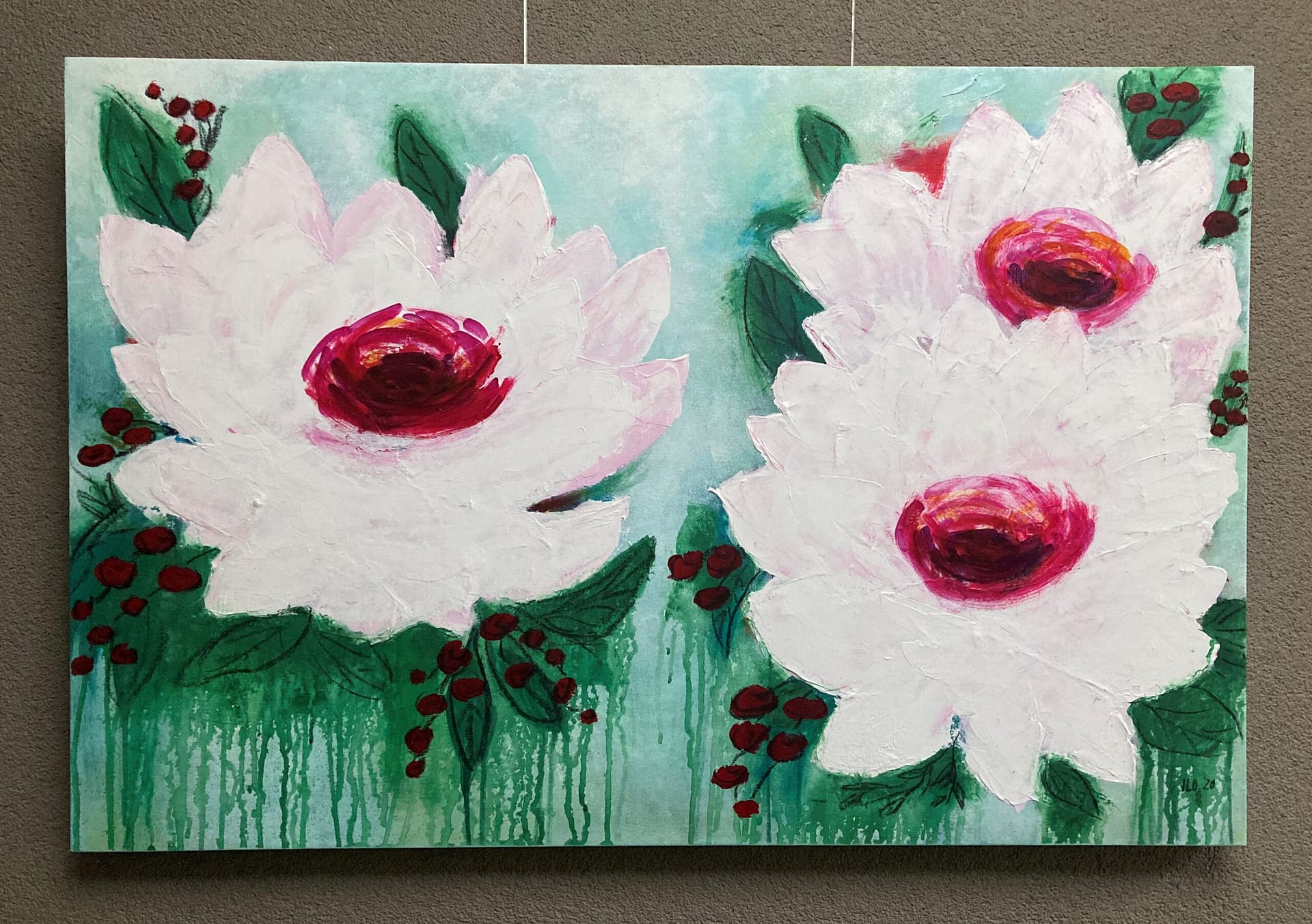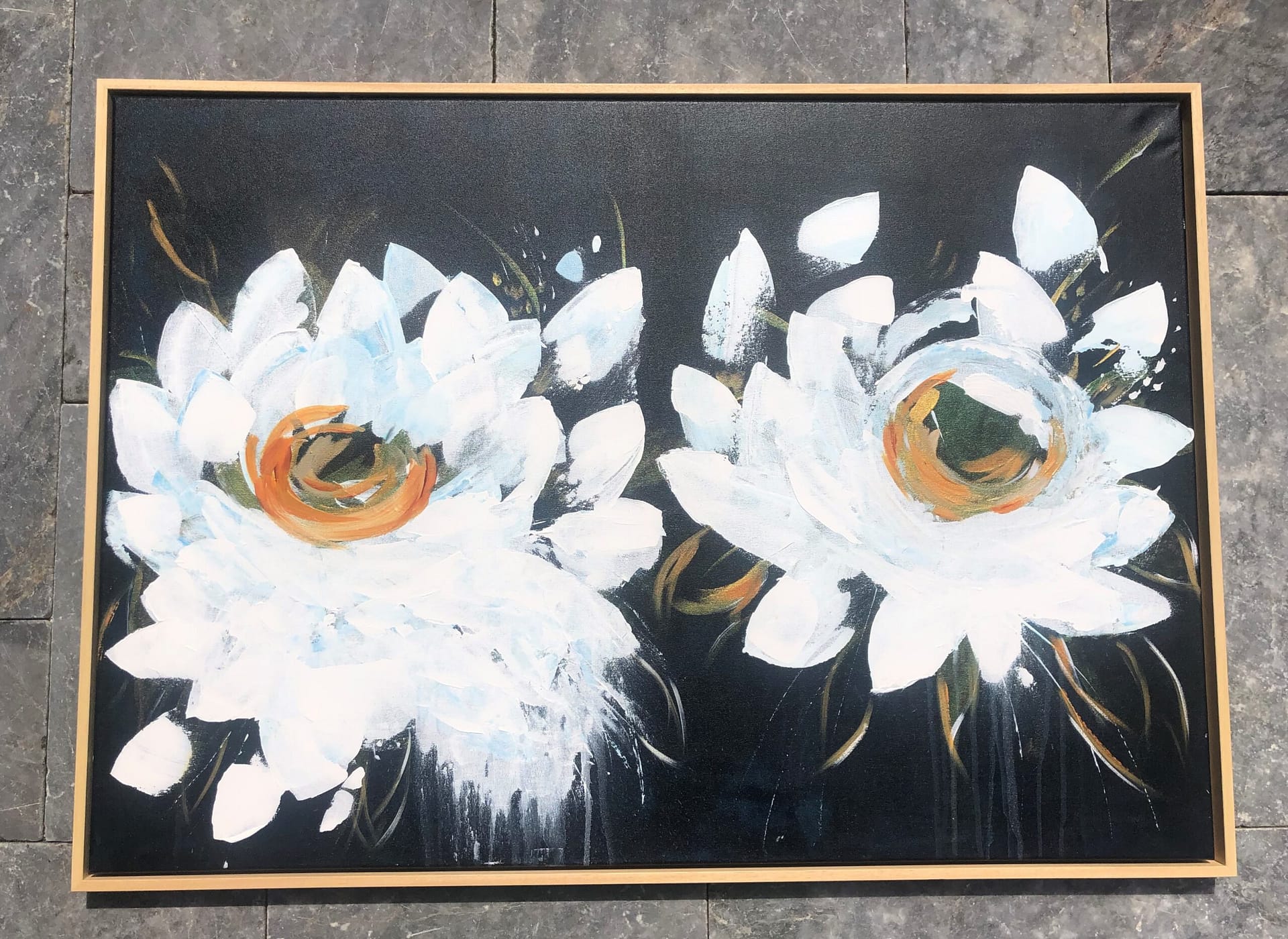 ILO’S flowers, acryl op doek, 70 x 100 cm in blankhouten baklijst