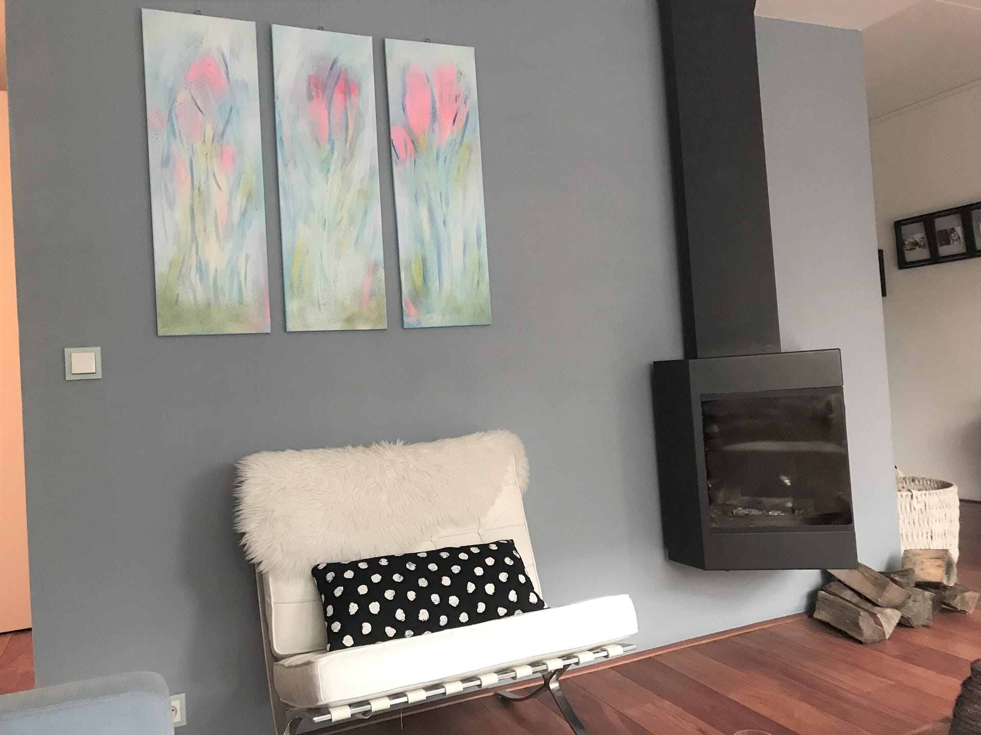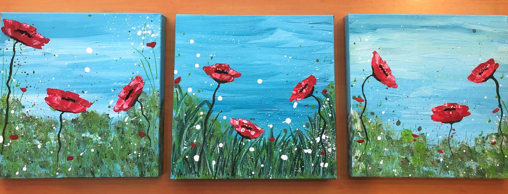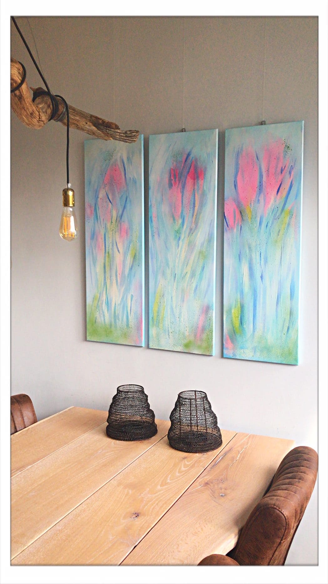 Spring es in the air, acryl op doek, drieluik 90 x 30 cm