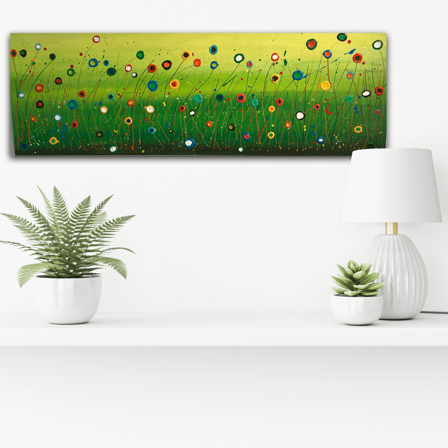 ILO’S Flowerbed, acryl op doek in naturel houten baklijst, 120 x 40 cm VERKOCHT TEVENS IN ANDER MATEN/KLEUREN OP MAAT TE BESTELLEN
