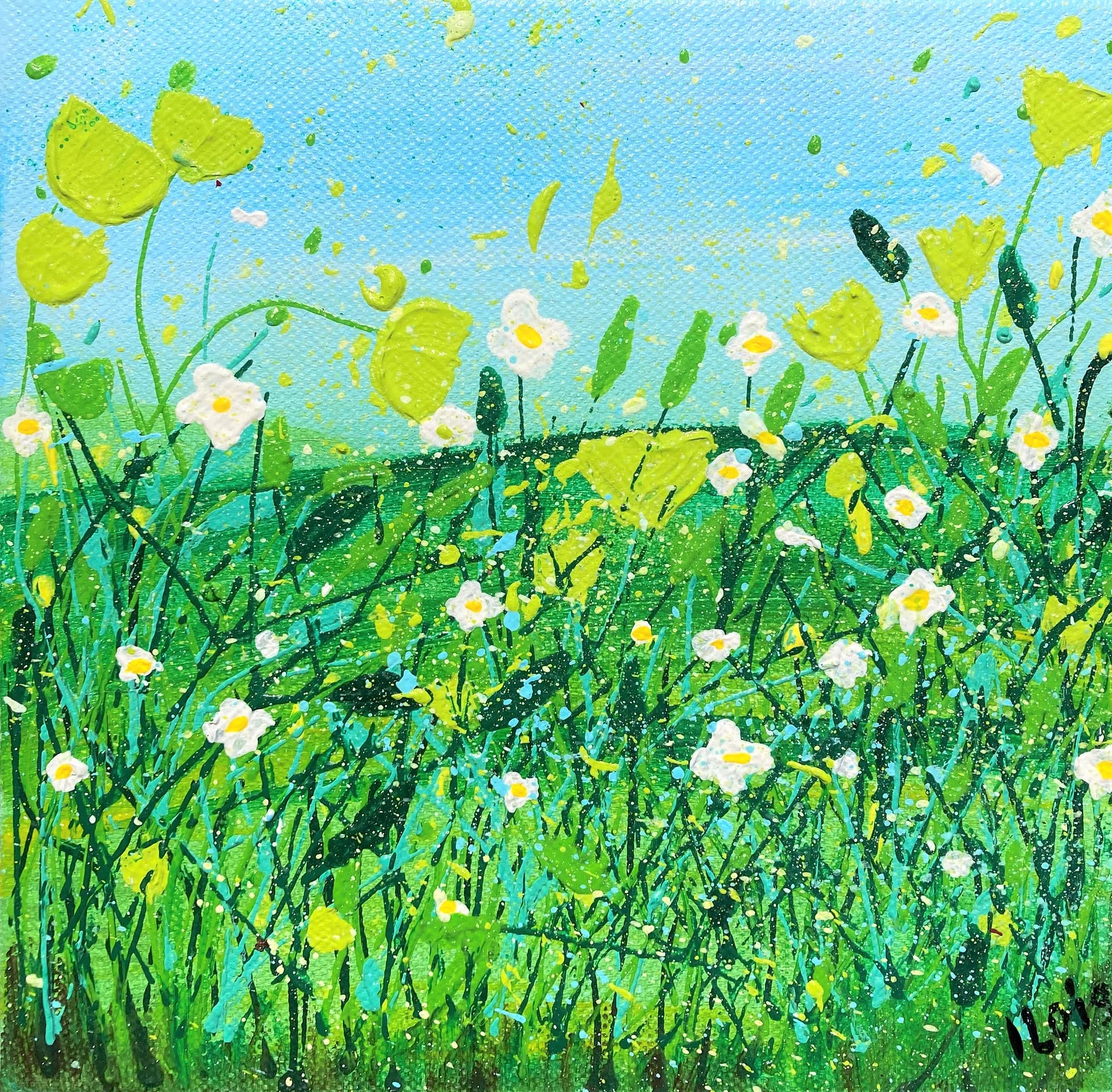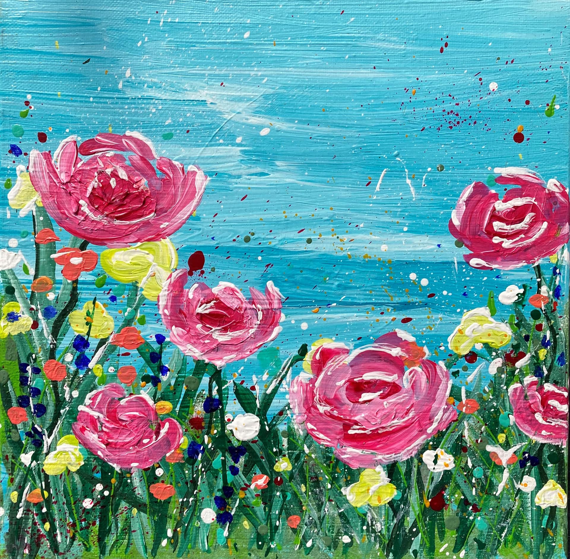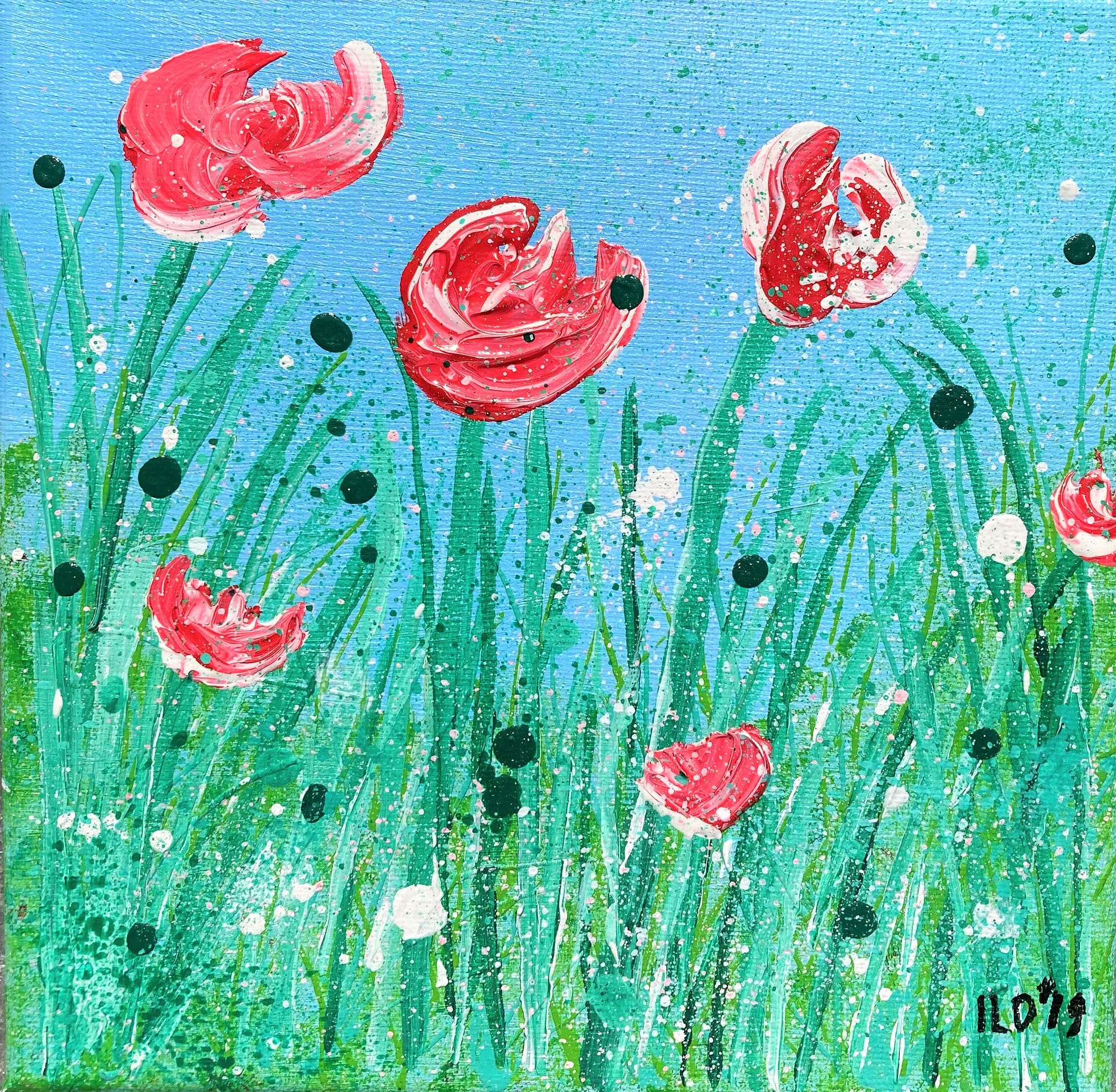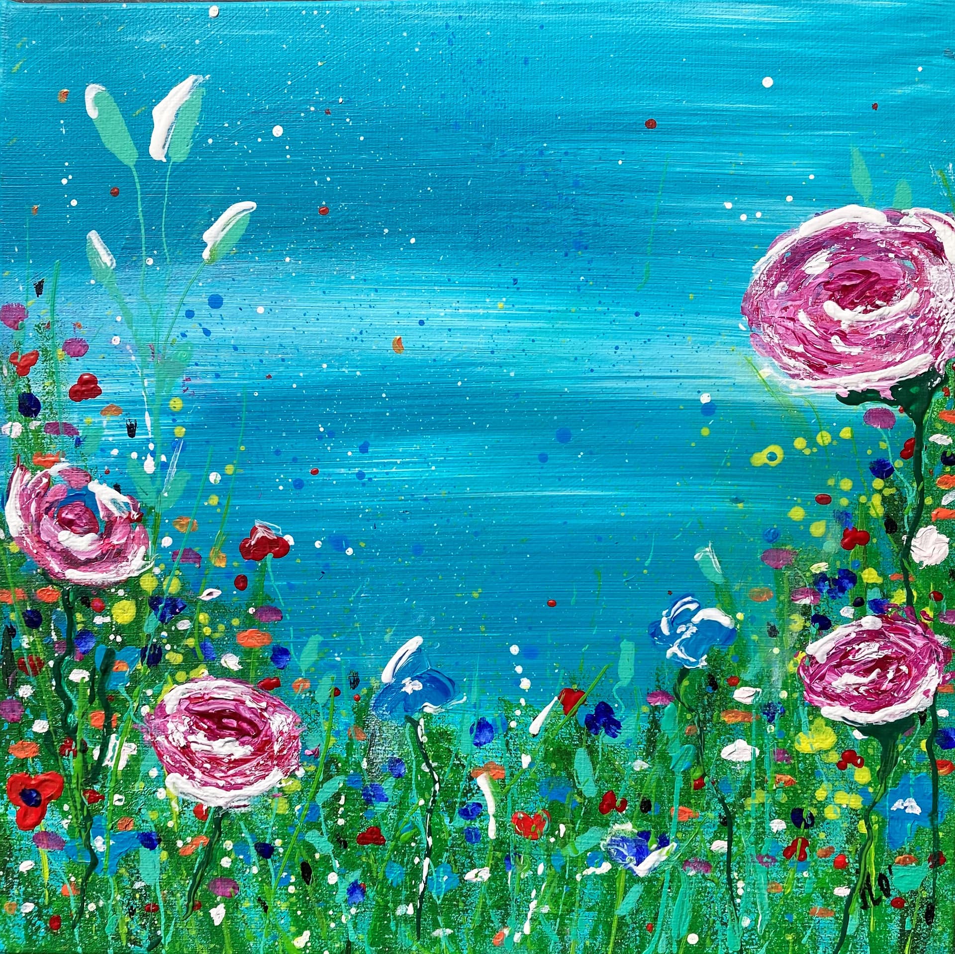ILO’S Flowerbed, acryl op doek, 20 x 20 cm