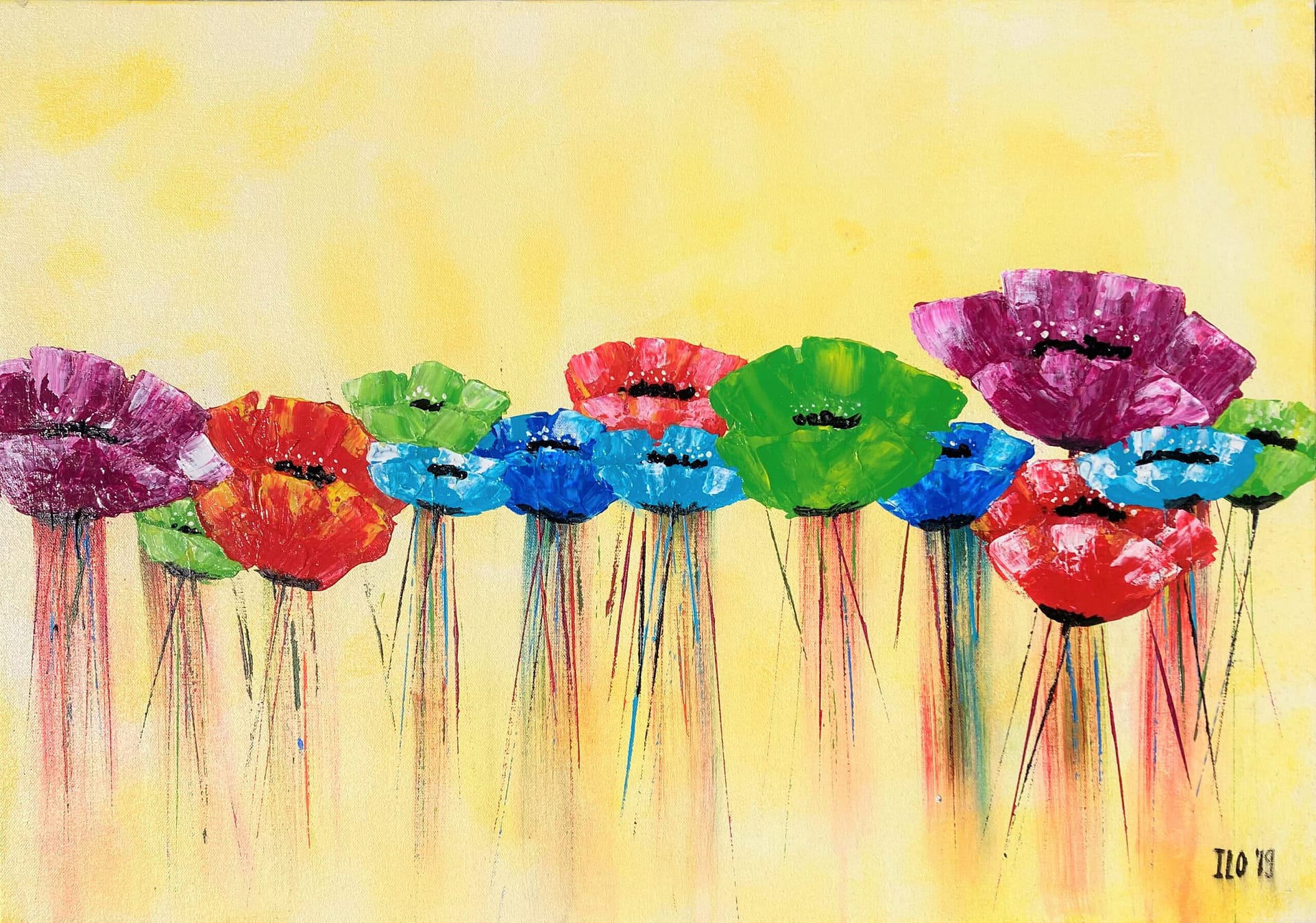 ILO’S Flowerbed, acryl op papier, ingelijst, 70 x 50 cm