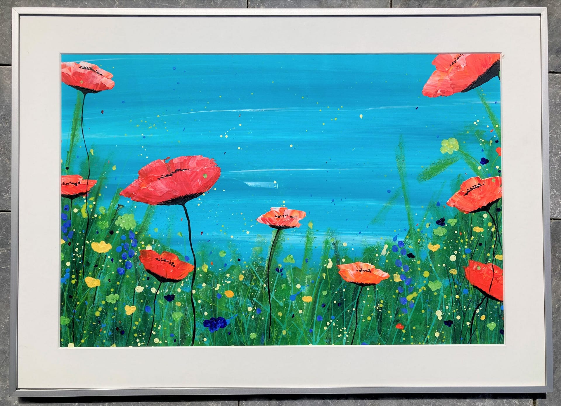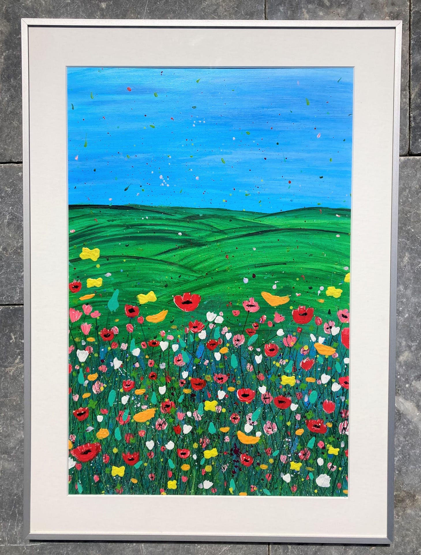 ILO’S Flowerbed, acryl op papier, ingelijst, 50 x 70 cm