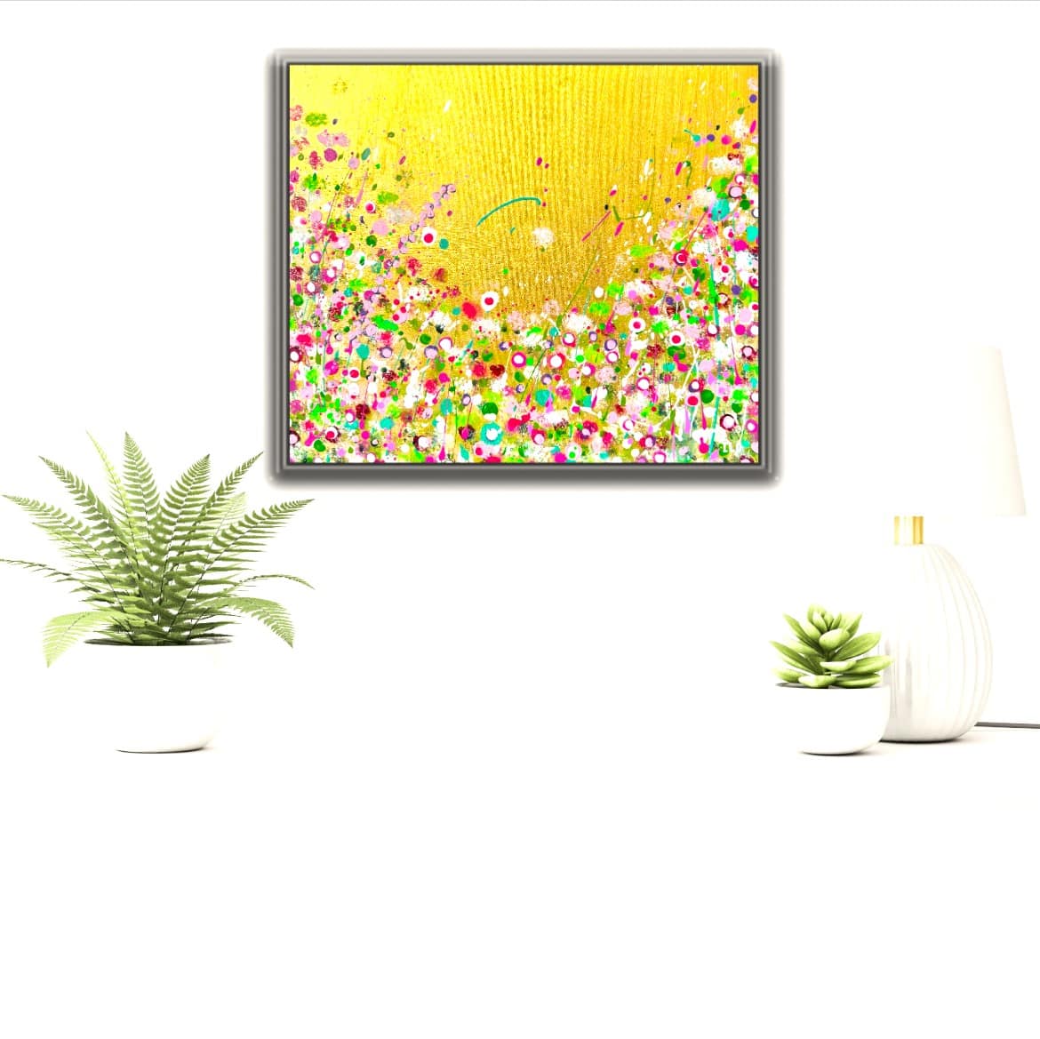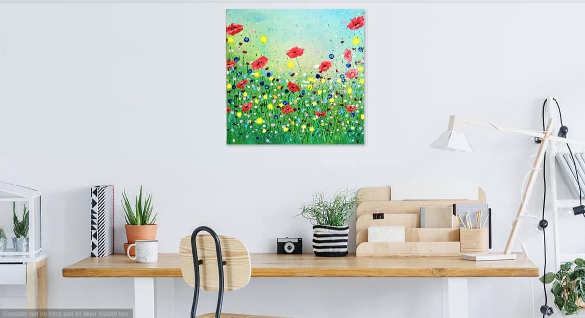 ILO’s Flowerbed, acryl op 3-D doek in blankhouten baklijst