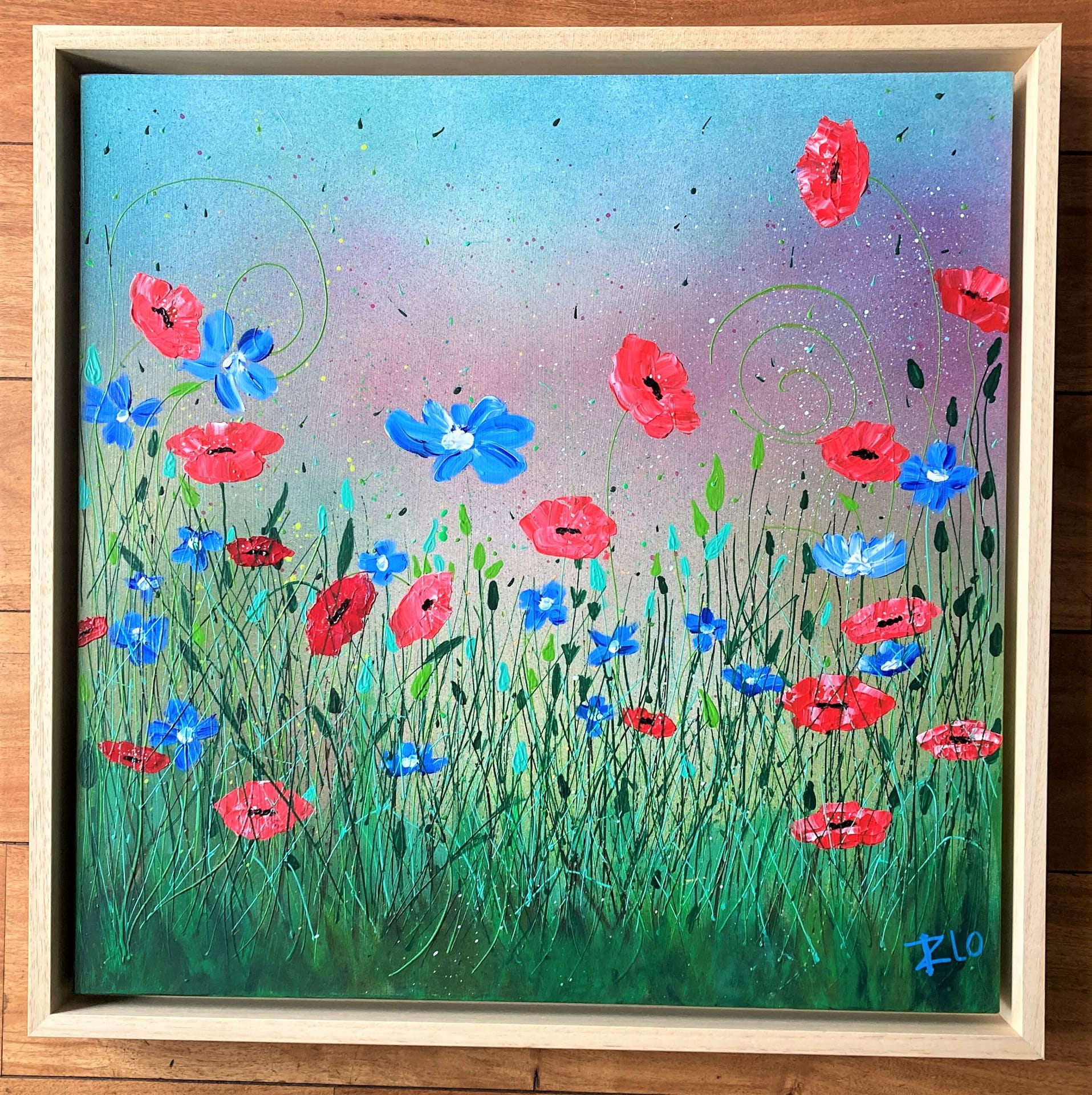 ILO’s Flowerbed, acryl op 3-D doek in blankhouten baklijst 30 x 30cm